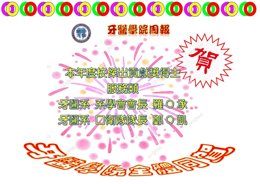 1130528賀!本年度校傑出貢獻獎得主服務類 牙醫系系學會會長 羅O承 口衛隊隊長 鄭O凱